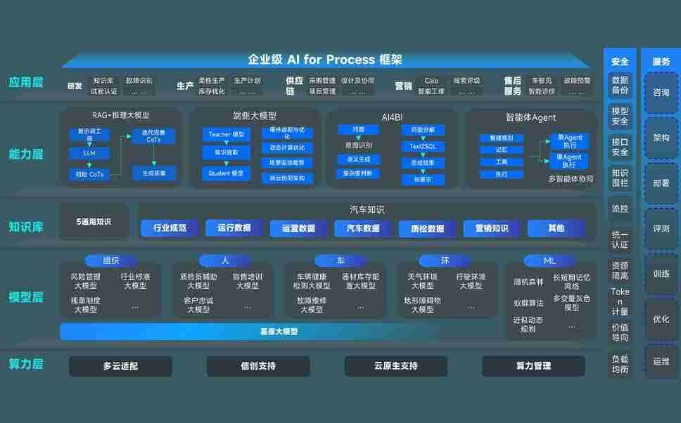 端到端的一站式AI工作空间深度融合了从企业战略规划到日常经营的全流程业务板块,,,,定向解决车企内部领域多、、、部门多、、链条长、、场景碎片化等难题,,,,支持车企快速构建以AI为核心的生产力写作体系,,实现任务执行与AI能力的无缝集成与交互