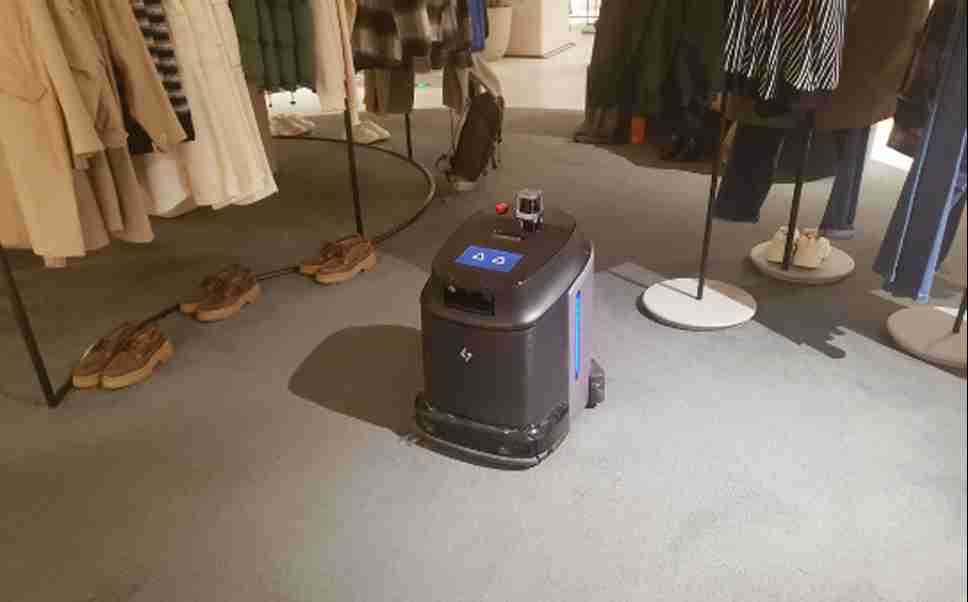 门店采用租用清洁机器人业务模式,,,保洁员配合机器人,,,,保障清洁质量,,,,落实人+机结合清洁理念。。由1台清洁机器人每日定时多次进行洗地、、尘推、、吸尘及清扫作业。。保洁人员配合进行垂直清洁及边角清洁。。。。机器人释放180H/月的工时,,相当于1-1.5个岗位。。。。按时薪25元/小时算,,,,释放工时价值:¥4500/月。。